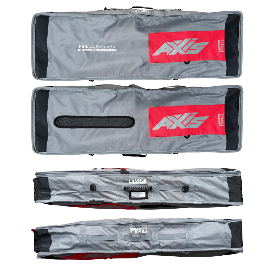 Whether you use them for travel, to organize the back of your car or to hide new additions from your partner, these quiver bags will keep all your precious foil gear safe and together. Made from robust 600D and nylon webbing construction with reinforced sidewalls. We’ve incorporated a ventilation system . We’ve sized them generously so they’ll accommodate your quiver as it grows whether that extends to multiple wings, multiple masts or both.